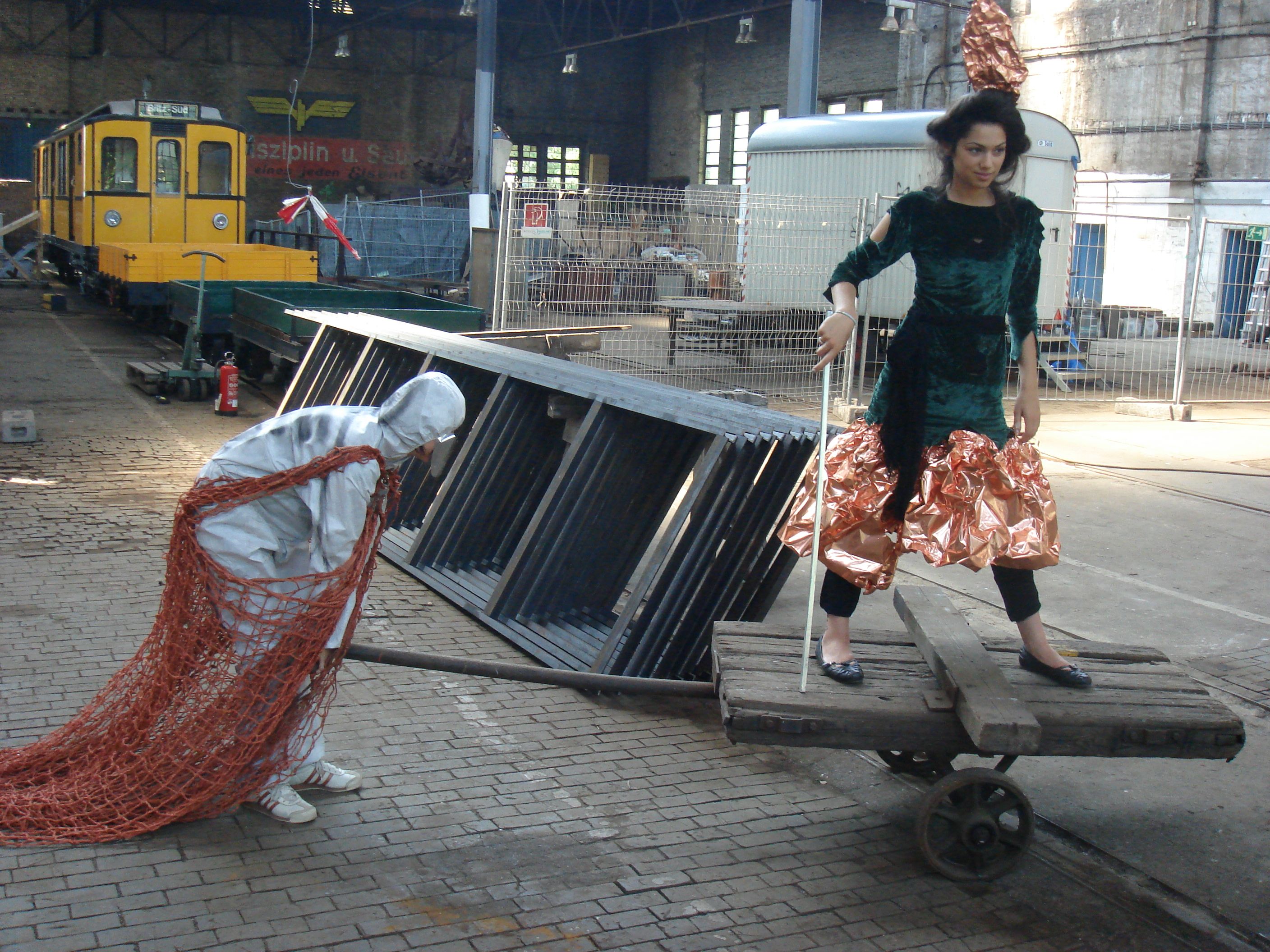 Ein Vorschlag der Jugendlichen war, die Halle als Ort für Mode zu nutzen. Sie improvisierten eine Modenschau. Mangels Laufstegs wurde das Model auf einem Karren durch die Halle geschoben.